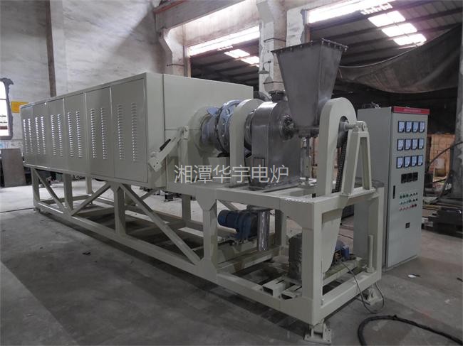 管式回轉(zhuǎn)焙燒電爐由爐體、加熱元件、爐管、加料裝置、出料倉、傳動(dòng)機(jī)構(gòu)及溫度控制柜組成。